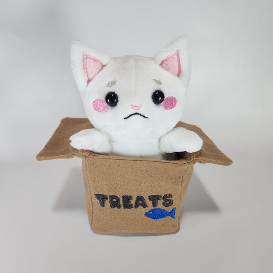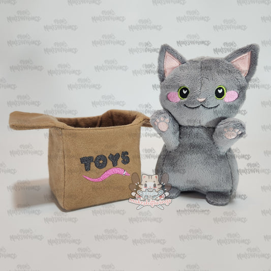 PROTOTYPE PLUSH - Cat in a Box (Grey Treats)