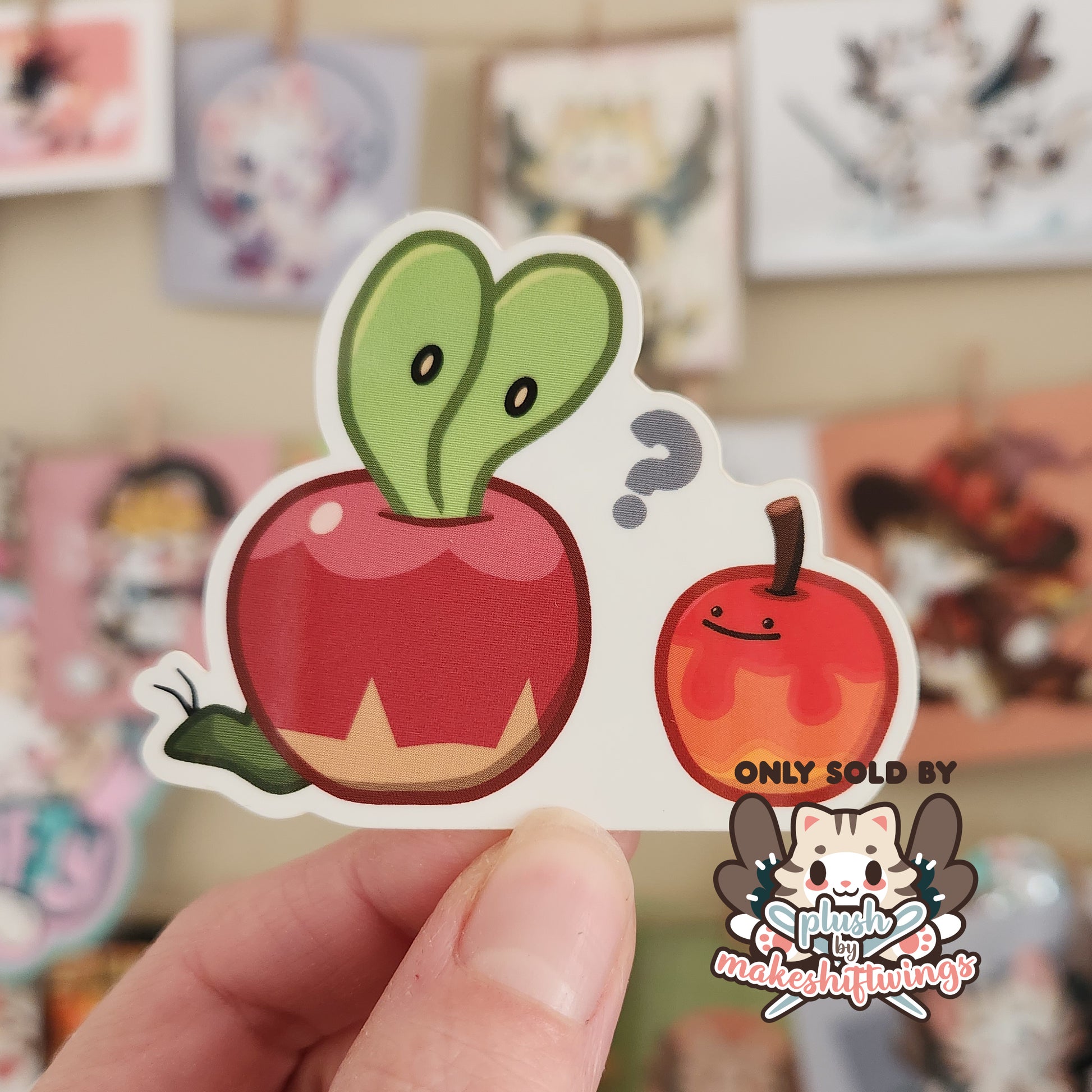 This apple sticker is approximately 2.7" wide. It has a glossy vinyl finish. This sticker is weatherproof for 2-4 years. This means they will hold up in the rain, sun, snow, dishwashers, microwaves, etc.