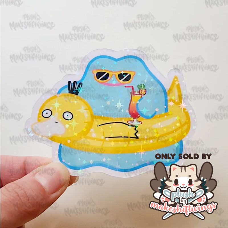 This sticker is made from water resistant glossy holo vinyl. While they are water resistant, they should not be submerged in water or placed on cups that will be run through the dishwasher. They are not UV resistant, so please do not place them outside.