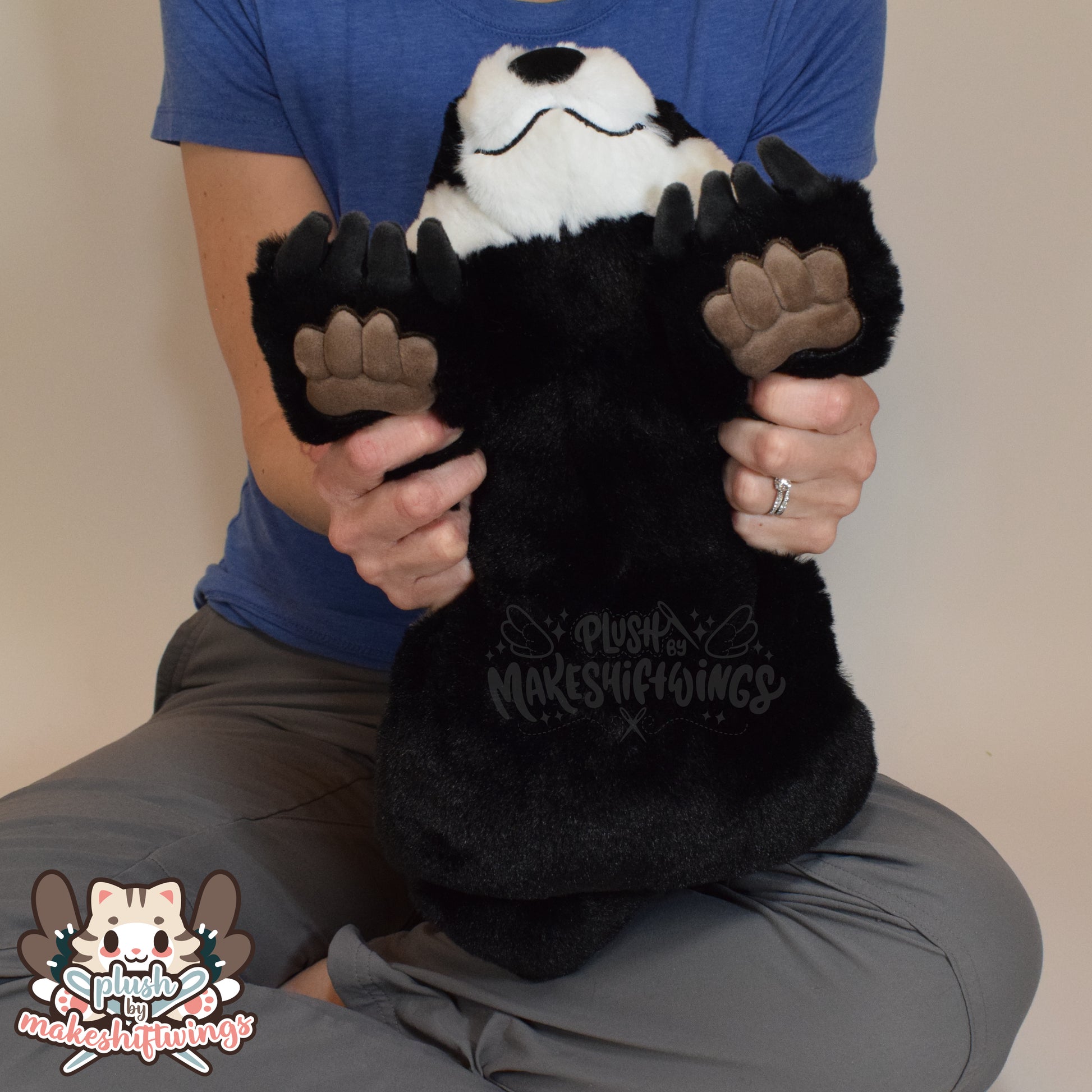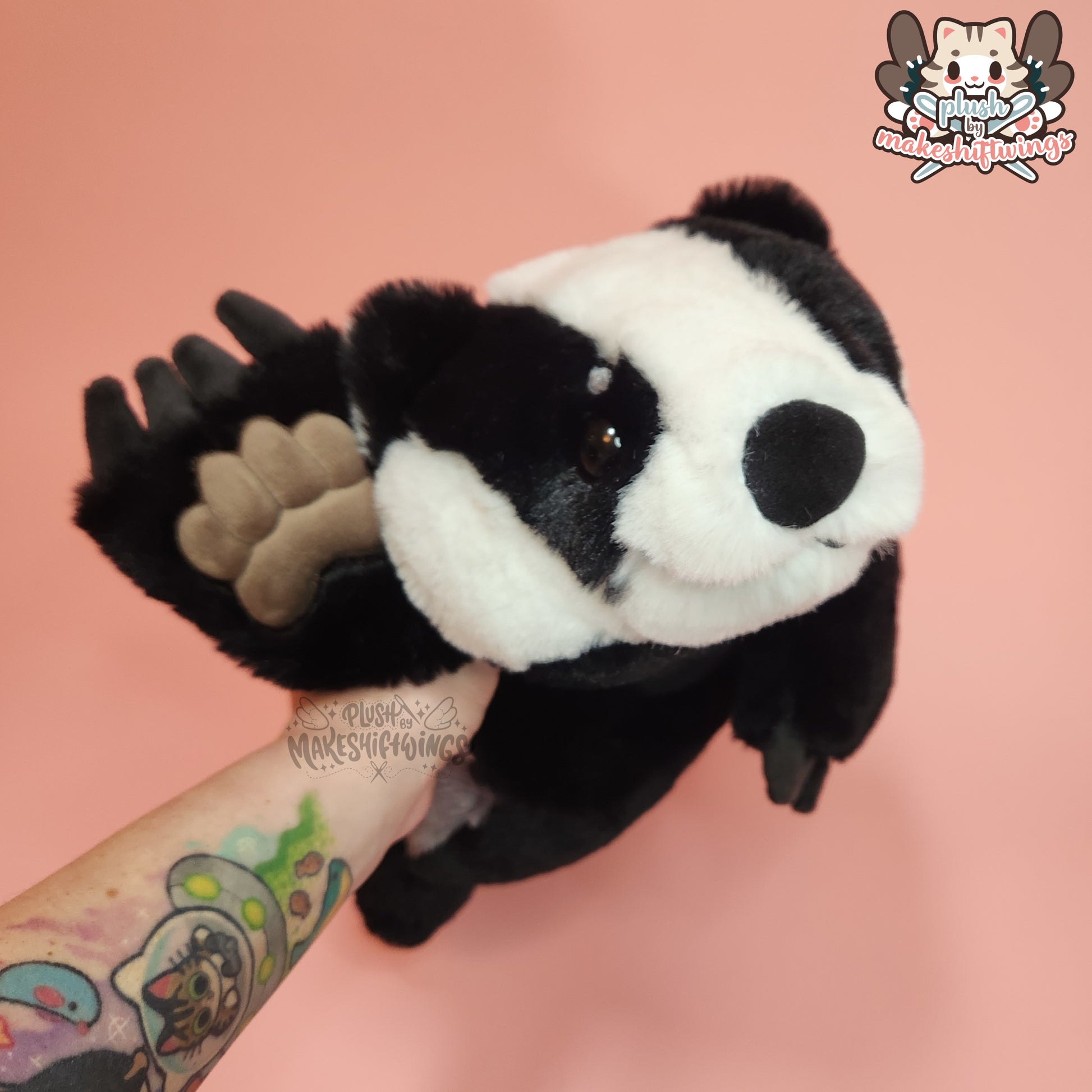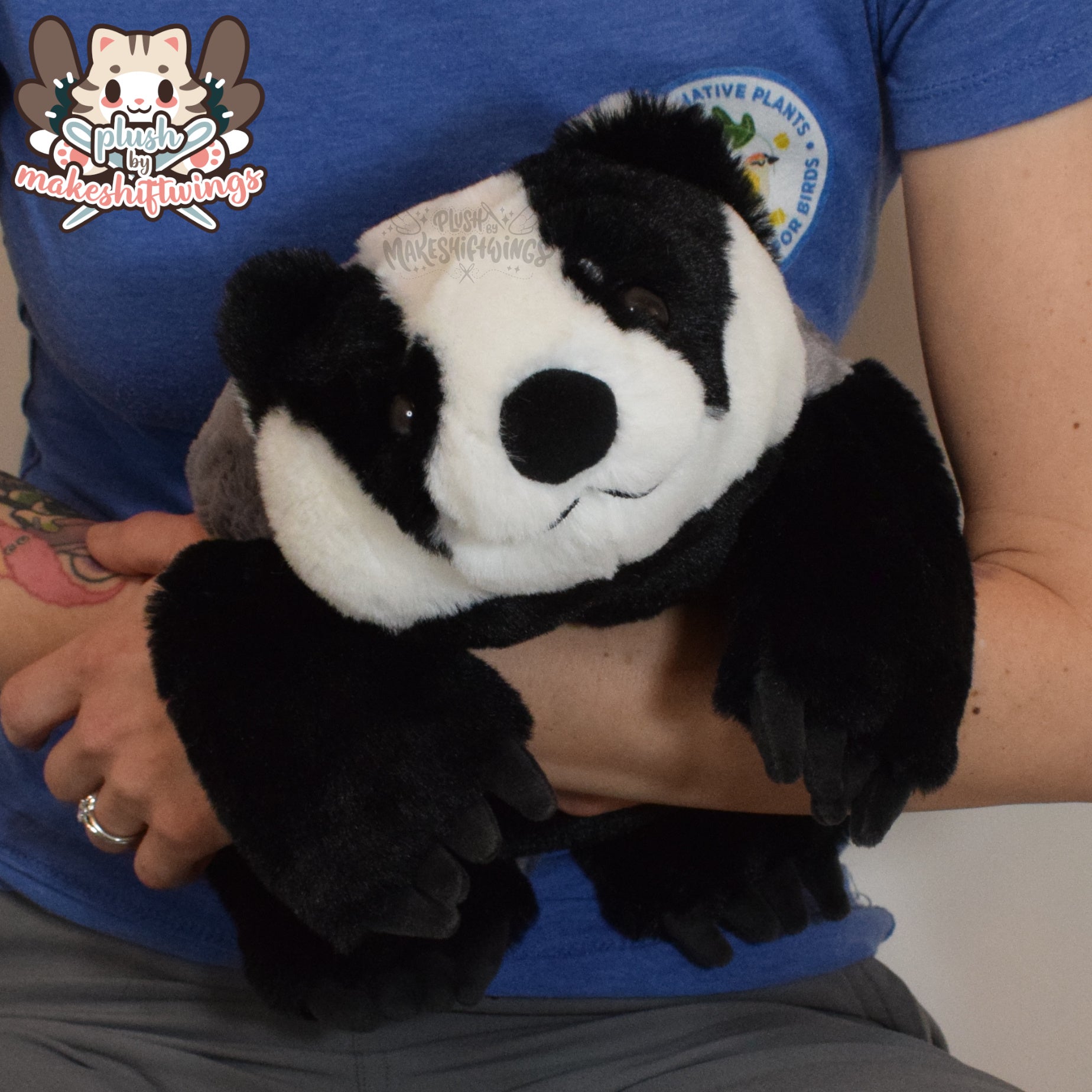 This flat badger plush is made from luxe cuddle minky with mochi minky claws and puffy paw pads. He has safety eyes and an embroidered mouth. He has polypellets in his limbs so he is very soft and floppy! Plush is entirely machine sewn except the nose, which is hand-sewn on. Plush is approximately 17" long.