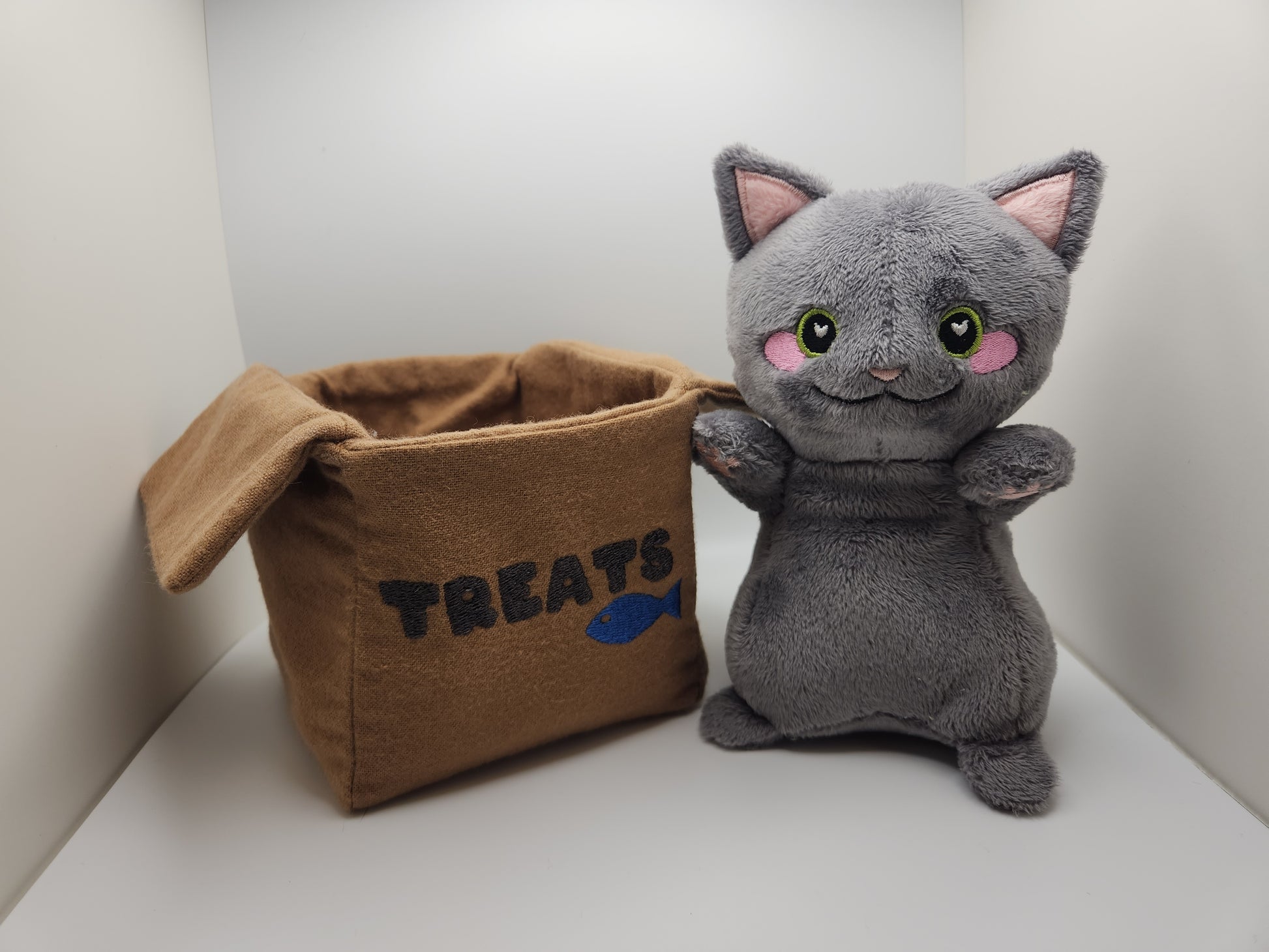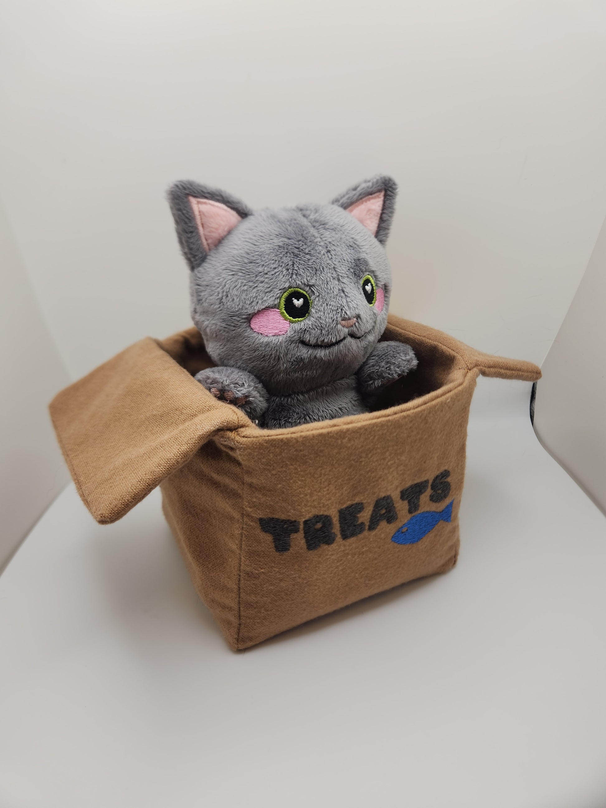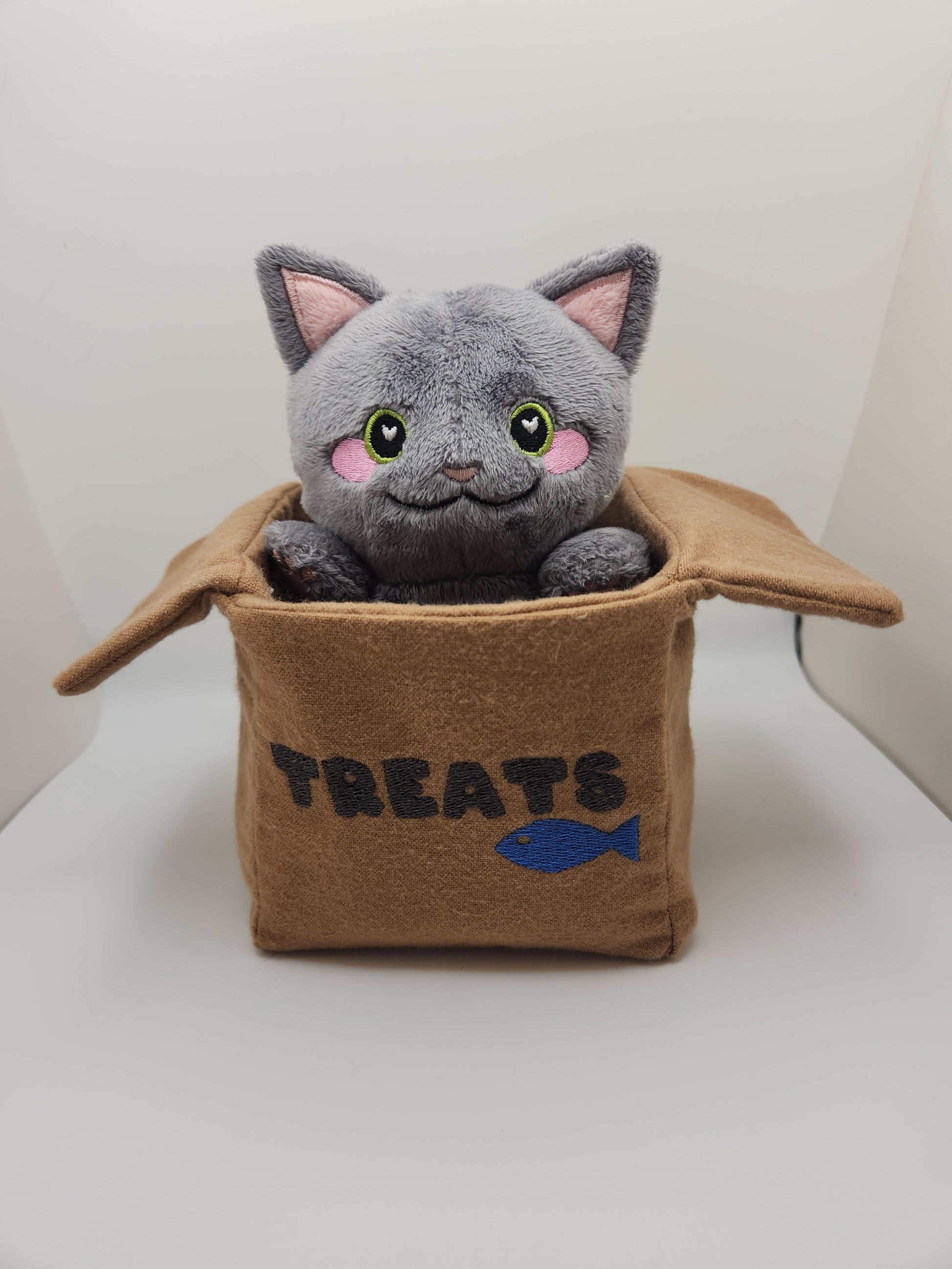 PROTOTYPE PLUSH - Cat in a Box (Grey Treats)