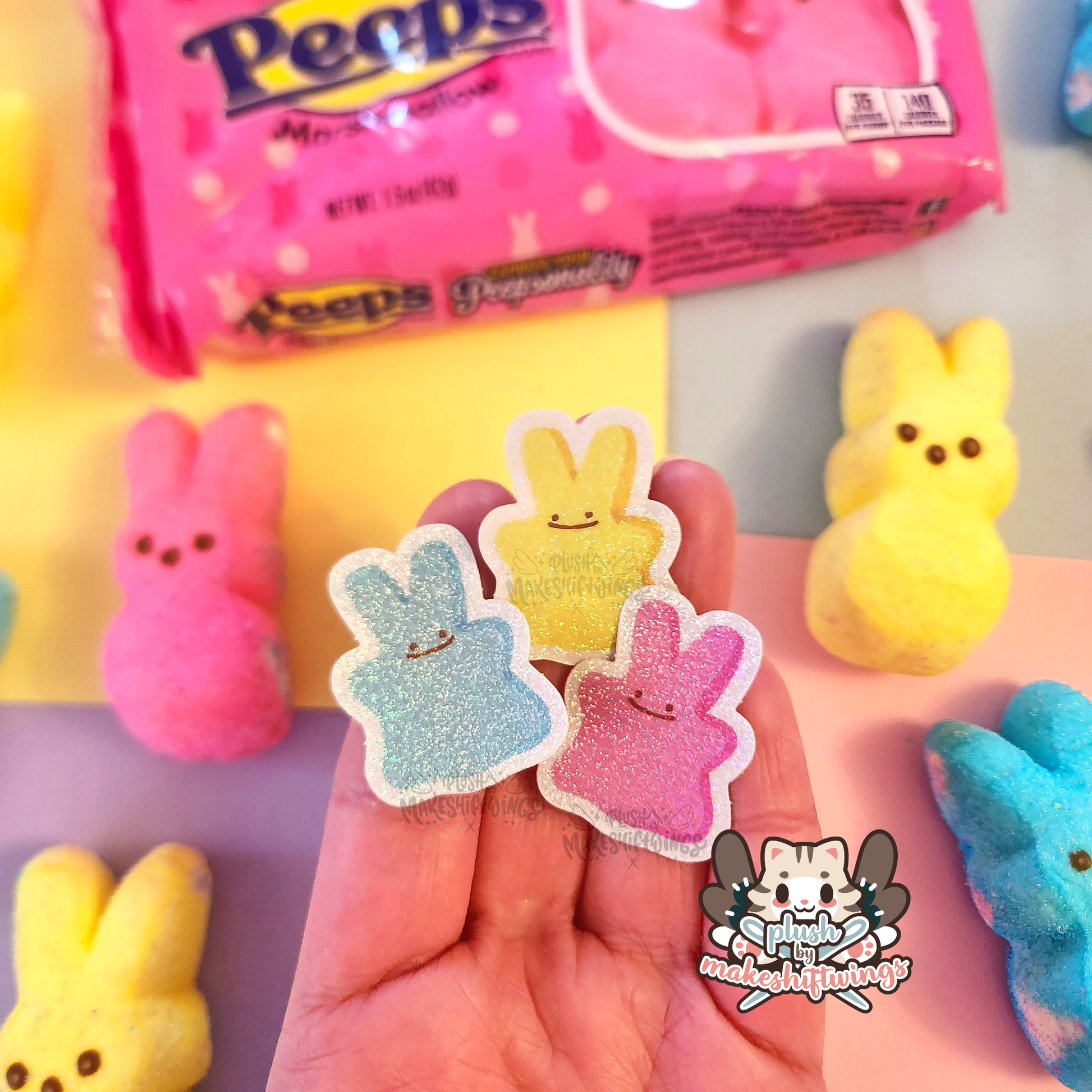 This is a set of 3 miniature glittery peepitto stickers. Each sticker is approximately 1.3" tall with a shiny glitter finish. The stickers are weatherproof for 2-4 years. This means they will hold up in the rain, sun, snow, dishwashers, microwaves, etc.
