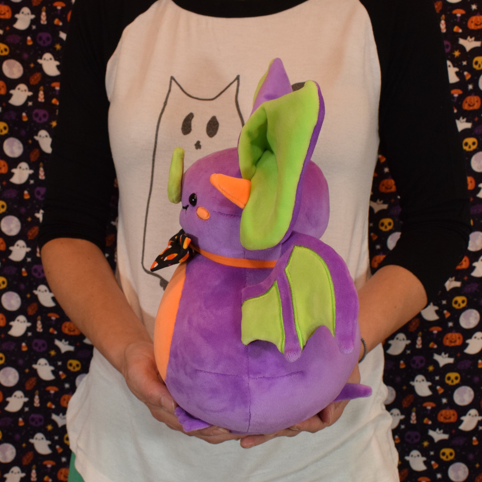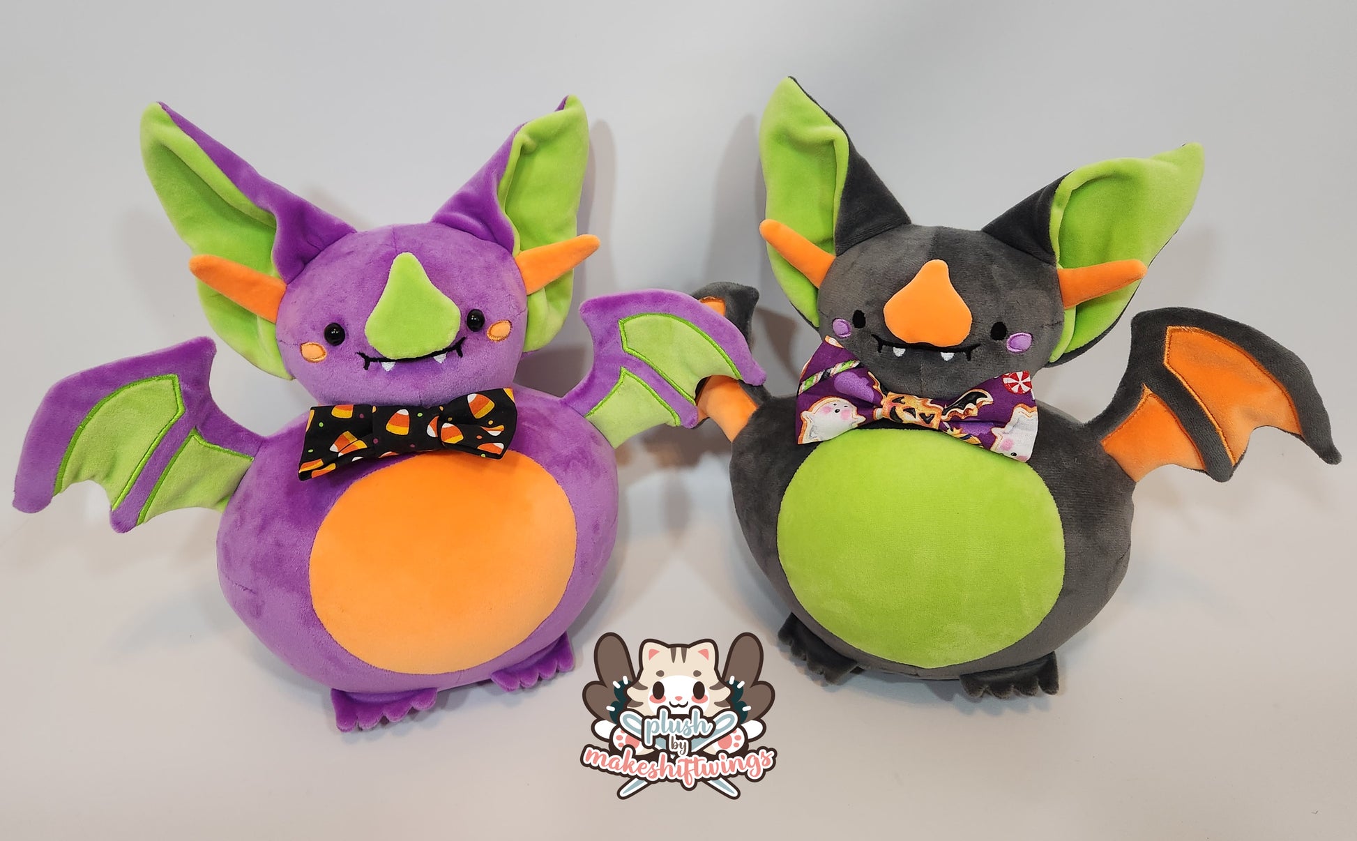 - sewing pattern to make an 11" bat plush out of mochi minky (recommended), normal minky, fleece, or other stretch plush fabrics