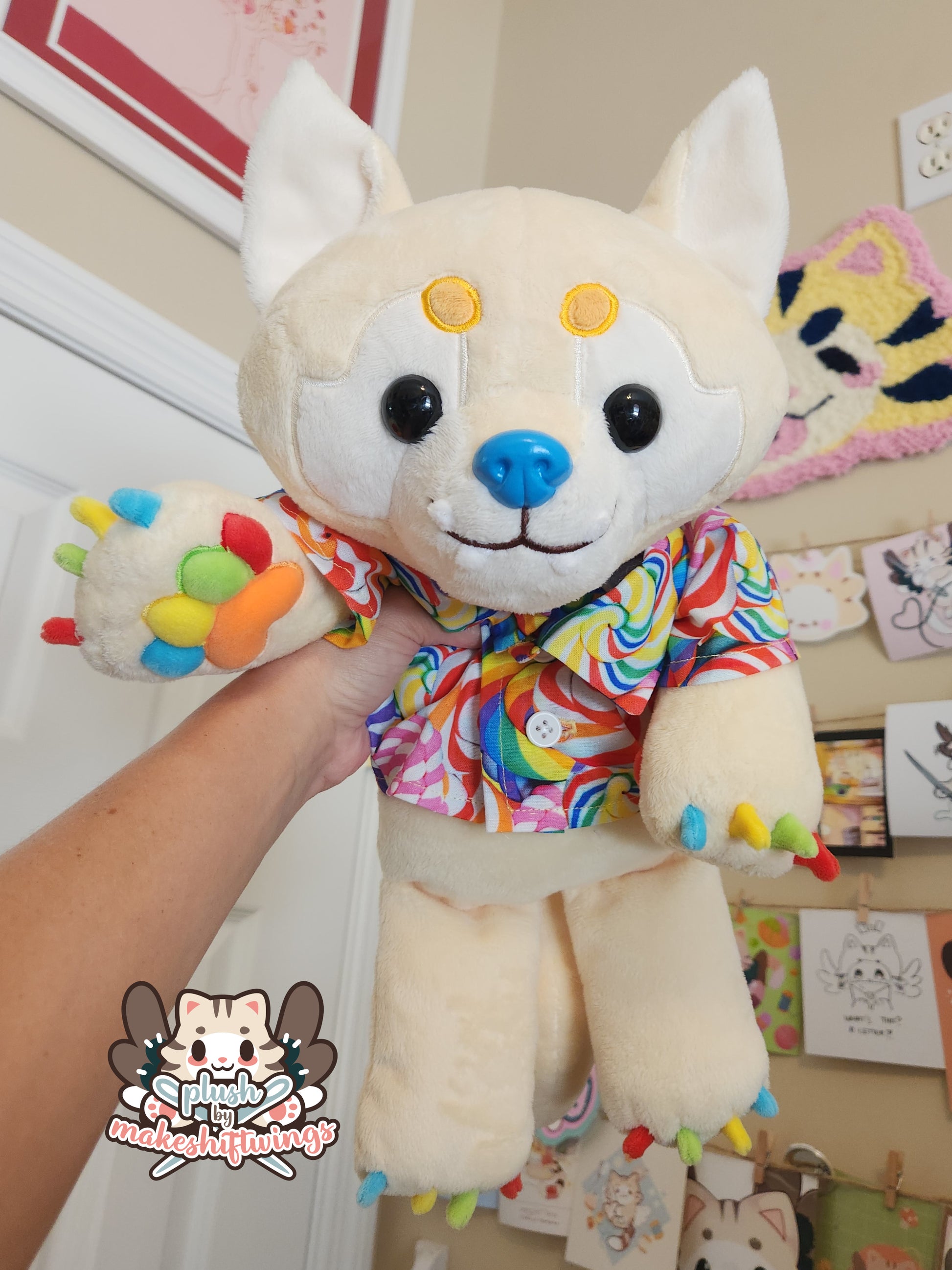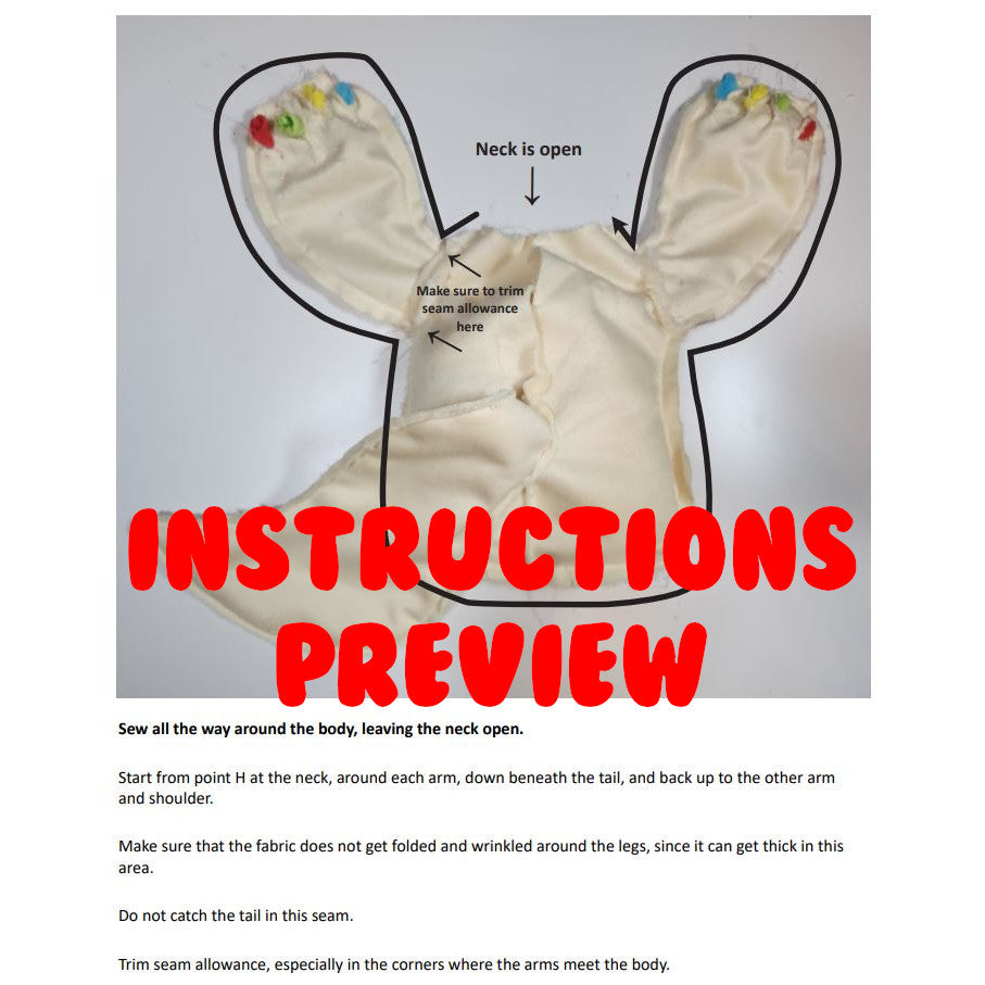 - sewing pattern to make a 16" floppy werewolf plush out of luxe cuddle minky (recommended), normal minky, mochi minky, fleece, or other stretch plush fabrics