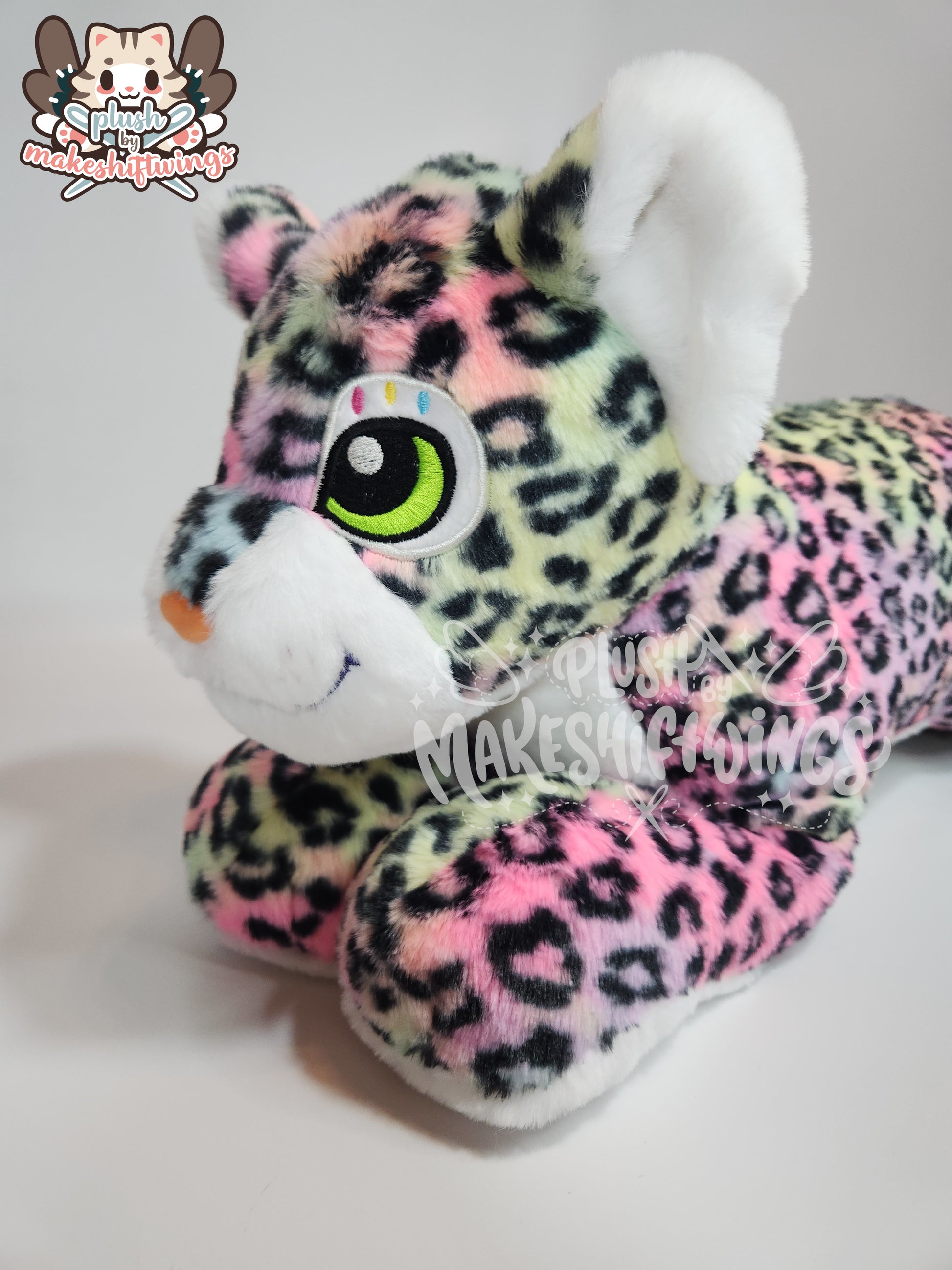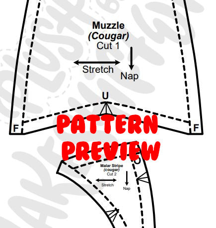 - modifications for making a snow leopard (longer tail & snowflake eye shine embroidery option) and a cougar (malar stripes)