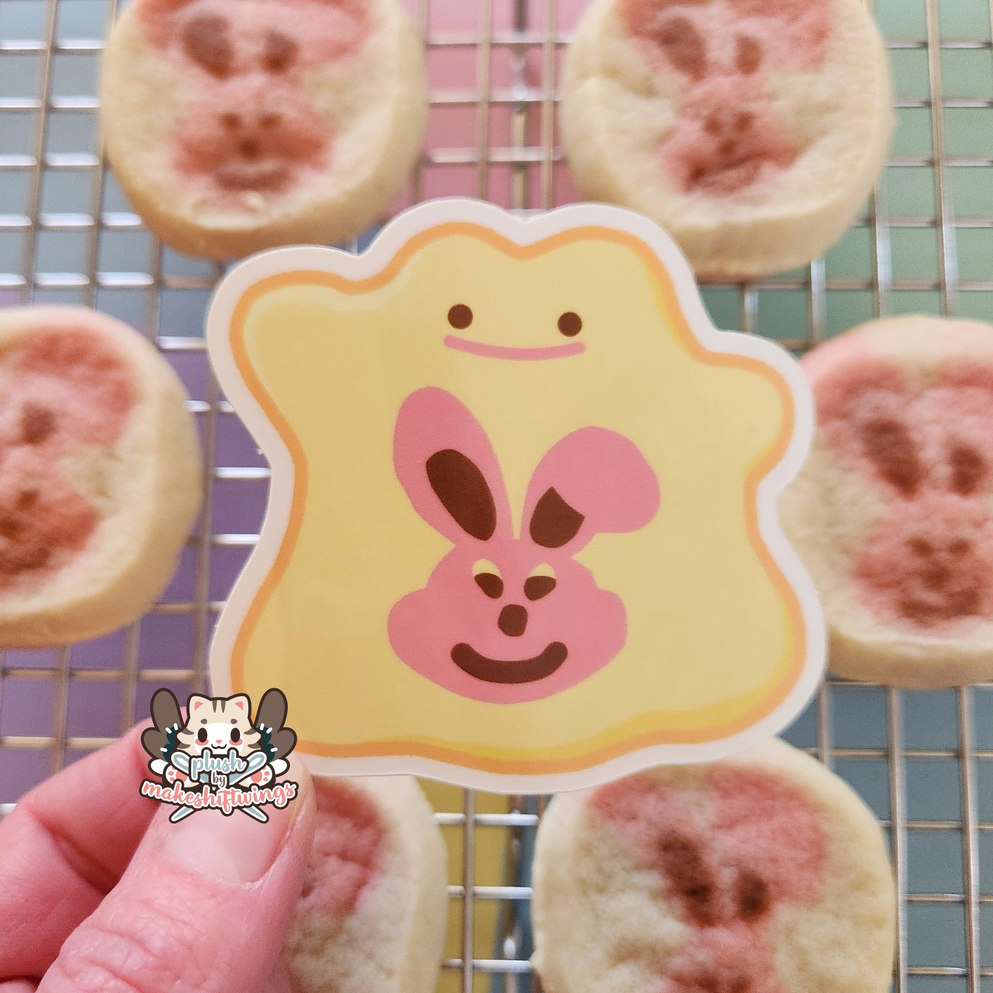 This slice and bake bunny sticker is approximately 2.5" tall with a glossy finish. The stickers are weatherproof for 2-4 years. This means they will hold up in the rain, sun, snow, dishwashers, microwaves, etc.